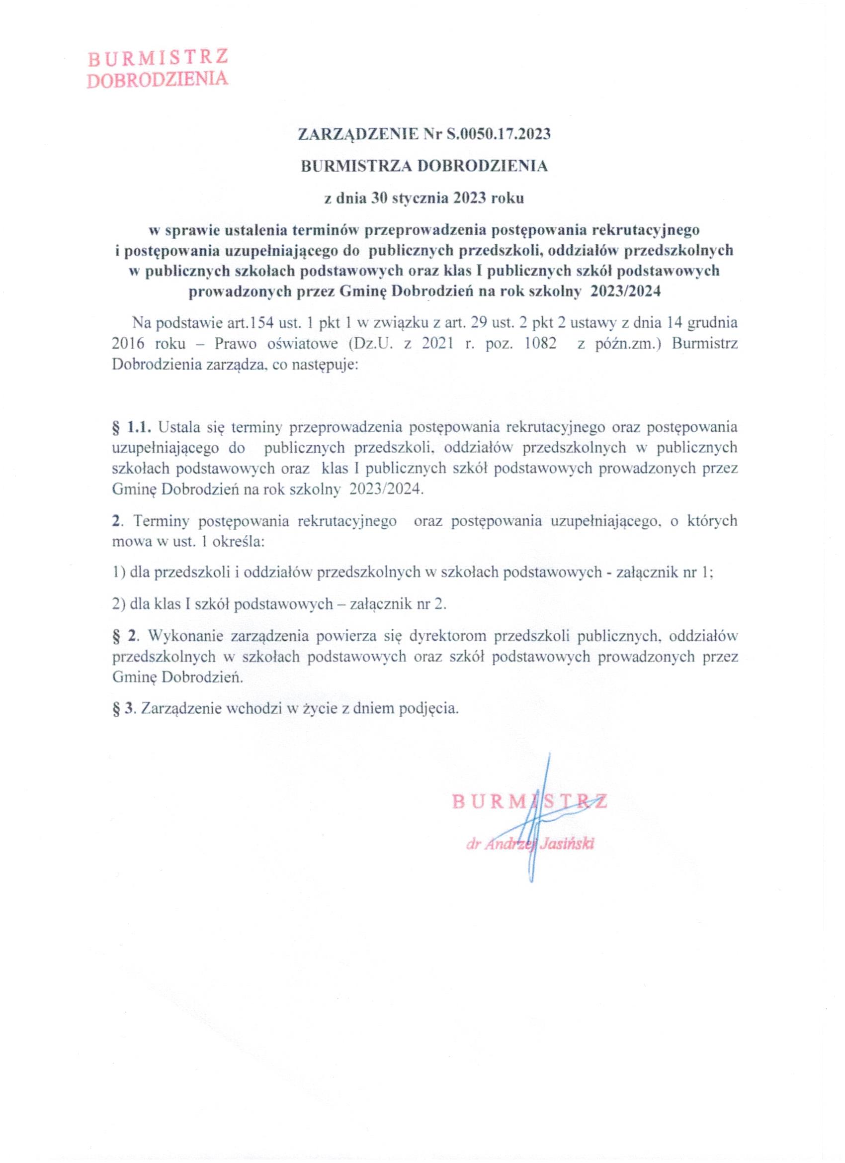 Gabriela Macha) - Dodanie załącznika [zarzadzenie.jpg] do dokumentu. (Dokument opublikowany)